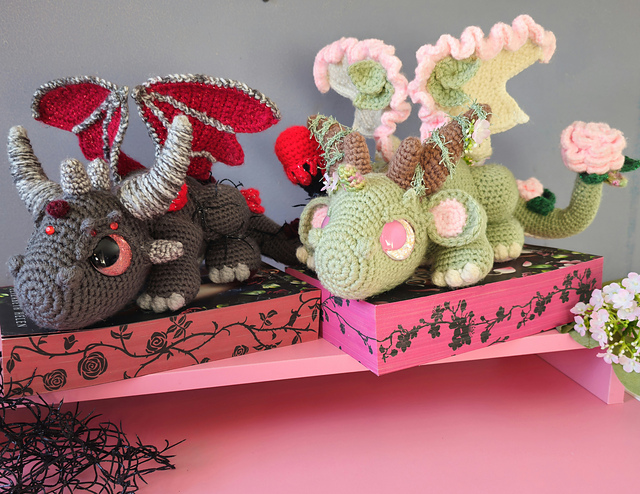 this is a written crochet pattern for the 2 book dragons dark romance and fae fantasy, there are lots of pictures to help you through the pattern.