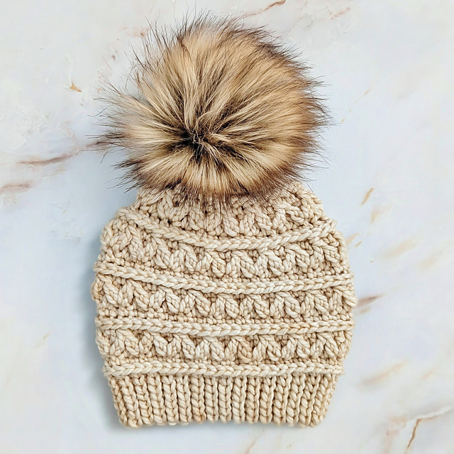 * Approximately 135 yards/123.5m Light Bulky (#5) yarn. Try to aim for a yarn between 130-150 yards per 100g. I used Malabrigo Vientos in Ivory and Premier Elle by Me Charlotte in Caramel for my sample hats.