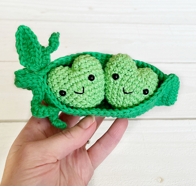 Your PDF purchase is sent to you as an instant download so you can start crocheting today! The digital pattern includes written instructions with step by step photos. All patterns are written in English in US crochet terms. The finished peas are about 2" wide and the pea pod is about 6" across.
