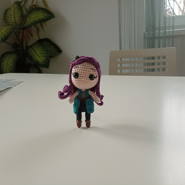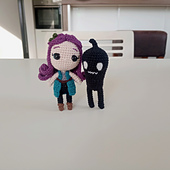 This PDF pattern contains instructions to crochet Abigail, a character from the video game Stardew Valley. It includes detailed instructions and many photos to help you at each step: from sewing parts together to embroidering the eyes and assembling the hair and accessories.