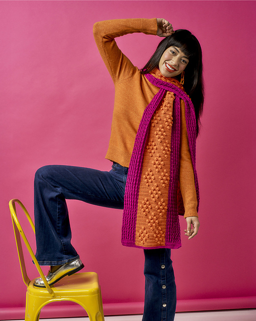 Why wait for summer to wear these hot, hot shades? You’ll get your colour and texture fix row by row with this funky accessory.