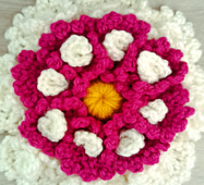 This PDF pattern covers Rounds 103–116 plus the assembly for the final Bougainvillea section: large 3D flowers, leaf details, and finishing steps to shape your mandala into a blanket.