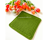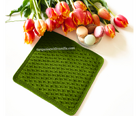 The Almond crochet dishcloth: 24 cm x 21.5 cm (9.5 inches x 8.5 inches);