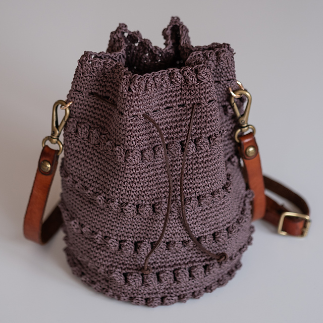 This cute bag is easy to crochet in many sizes, so you might even be able to take this crochet project with you to the “knitting or crochet cinema”, ideally equipped with a knitting or crochet neck lamp for good visibility and a large bag of real popcorn to snack on.