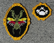 This pattern includes a cutout tapestry and a rectangular tapestry pattern of a praying mantis in a gold frame. This pattern can be completed with any yarn and the colors can be customized to fit your décor.
