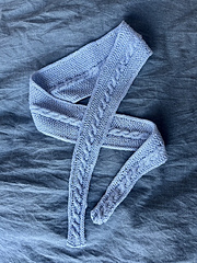 En liten scarf som stickas från ände till ände och ökas i kanterna innanför i-cordkanterna. Ökningarna bildar mosstickning på var sida om en dubbelsidig fläta som löper i mitten.