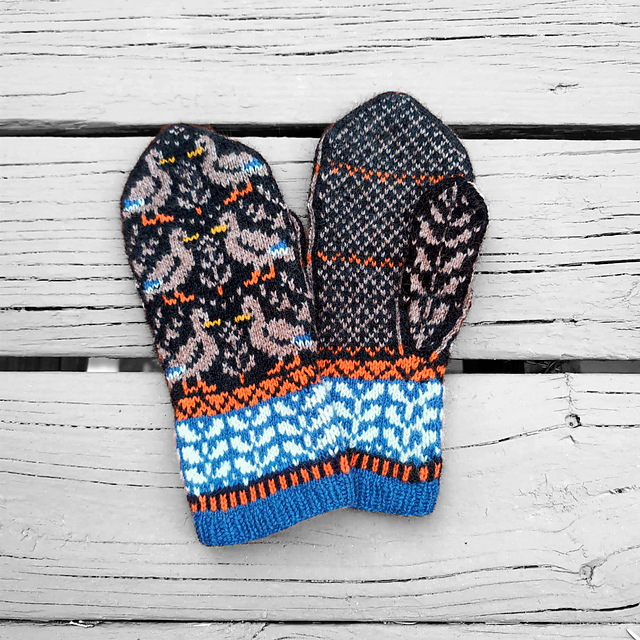 A cousin of Geese and Mallards Mittens - the same idea & construction, with ducks this time.