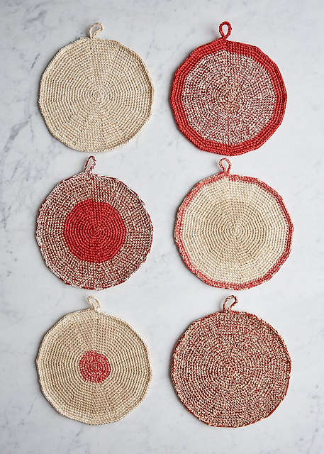 NOTE: One skein of Line Weight and 3 skeins of Cotton Pure are enough to make 6 Cook’s Pot Holders with some Cotton Pure leftover.