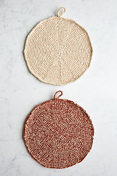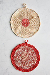 When you make these Pot Holders, hold together one strand of Line Weight and one strand of Cotton Pure.