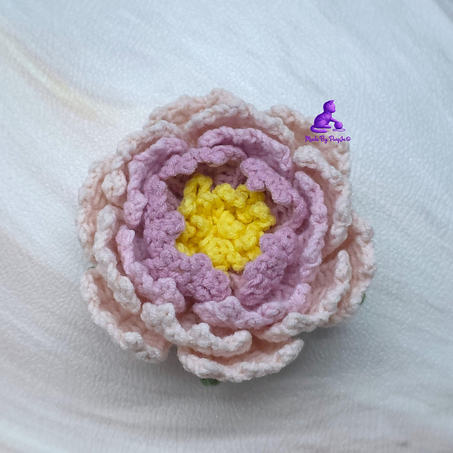The written pattern for the peony bloom is available to view on the [Made By PurpJe blog]. This printable PDF includes the additional instructions for the peony leaves.