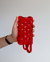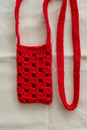 This crochet phone bag is worked in the round and the pattern provides written instructions, a chart and photos.