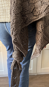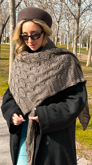 Se recomienda bloquear suavemente la prenda para que el chal adquiera su forma definitiva y luzca todo su diseño.
