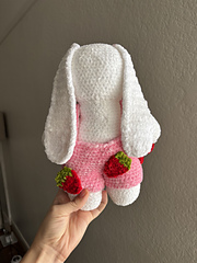 This pattern is at beginner-intermediate level and written in US crochet terms. There is very little sewing, only sewing needed is to attach the head, ears and strawberries.