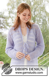 **Crocheted long jacket in DROPS Brushed Alpaca Silk. The piece is worked bottom up with lace-pattern and a shawl collar. Sizes S – XXXL.**