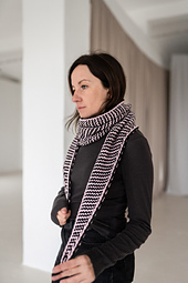 Twisty Shawl is a small elegant accessory with a beloved slim triangular shape. It uses a simple mesh crochet stitch for the body with a small brioche detail for a polished look. The shawl is lightweight with a nice drape.