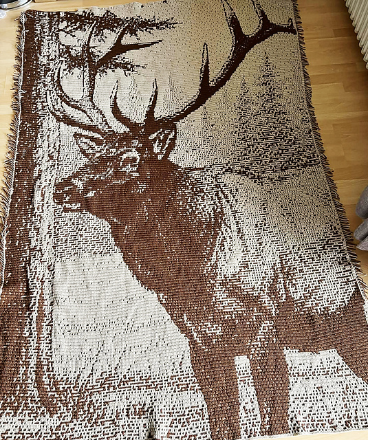 The amount of yarn used for this pattern by my tester without the border was: 1546 gr, 4.082 meters / 4464,13 yards (colour Camel) and 2034 gr., 5.369,76 meters / 5872,44 yards (colour Schokolade)