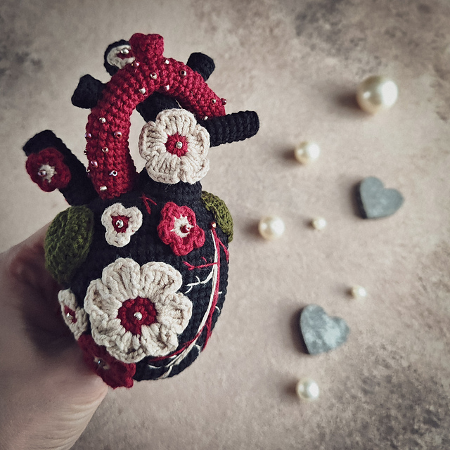 The crochet « Blooming Heart» pattern consists of: