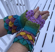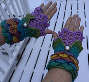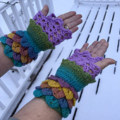 These beautifully textured fingerless gloves combine rich stitch detail with vibrant colourwork, making them both functional and eye-catching. Designed for warmth and style, they are perfect for cool weather while keeping fingers free for everyday tasks.
