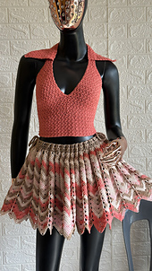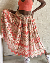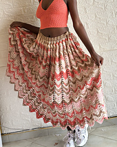 This skirt features a beautiful chevron / ripple pattern that blends perfectly with the variegated yarn effect, creating a unique and eye-catching print without complicated color changes. The pleats give it that flowy, feminine silhouette — perfect for dressing up or keeping it casually chic.