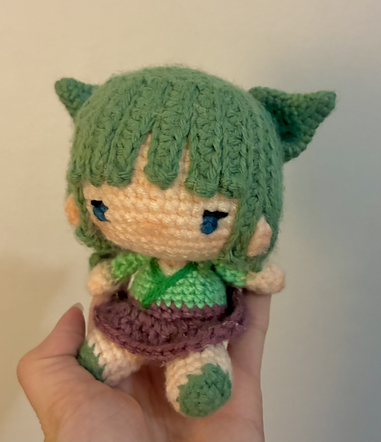 * Yarn: Magenta(M), White (W), Cyan Green(CG), Black (B), Bright Green(BG), Blue (C), Skin Color(SC), Red (R), Dark Green(DG), Light Blue(LB)
