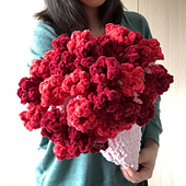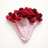 The Rose Bouquet Blanket is a no-sew crochet pattern that features three dozen roses embellishing the edges of a circle blanket. The blanket is about 32” across when laid flat. It can be folded up into a romantic bouquet shape, making this a lovely present for Valentine's Day, Mother’s Day, recitals and performances, graduation, birthdays, and basically any holiday you would gift flowers! They are also suitable for selling at craft fairs. This pattern is designed using super bulky weight 6 chenille velvet yarn and a large 9mm hook, making it work up quickly and resulting in a very plush blanket.