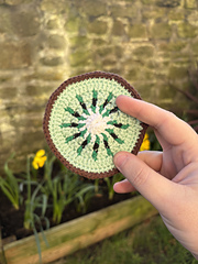 This is a written crochet pattern for the “Fruit Slice Coasters (& Platter)”- four different coaster designs (Watermelon, Kiwi, Orange and Dragon Fruit) and a ‘platter’ to hold/display them in.