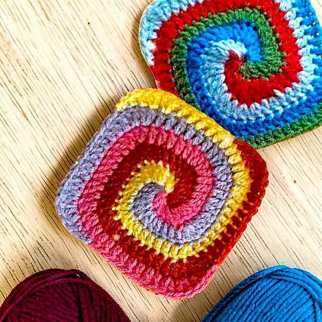 This design creates a lovely spiral effect that looks like a small colorful mandala. The pattern is easy to follow and fun to crochet. Even a small square can become part of a beautiful handmade project.