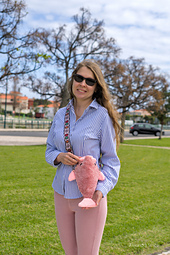 • plush yarn (120m/100 gr): 115 gr - natural color, 40 gr - pink color