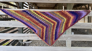 This is a triangular crochet scarf in the 6-Day Crochet™ style. With its playful and unique construction, this scarf is perfect for creating a chic bandana that’s both stylish and practical. The slightly asymmetrical kite-like shape features a distinctive chevron down the center, making it a fun and engaging project to crochet.