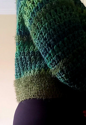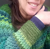 A combinação dos dois fios (Lãviva da Algodão da Selva, 50% lã virgem e 50% acrilico, 75g 135m e Mystic da Valeria Lanas, 40% acrilico, 35% poliamida, 25% lã, 50g 65m), a sua construção e o ponto principal utilizado, fazem dela um must have no seu guarda-roupa.