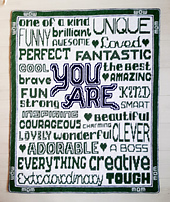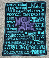 The pattern includes instructions to change color for the words 'You are'. Both in the charts and the written pattern these changes are indicated.