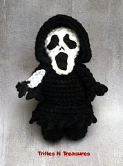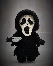 Completely crocheted-you won't need felt or glue, with just a little bit of sewing, he works up fairly quick, so you can create an army of Slashers in short order!