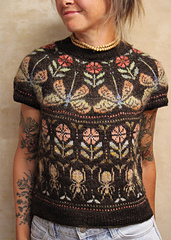 After cutting off the sleeves, smaller flower or beetle patterns can be knitted in.