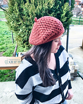 The Willow Beret features gentle shaping that forms the classic beret silhouette and is finished with a structured brim worked in the camel stitch (3rd loop of half double crochet) for a comfortable and polished fit.