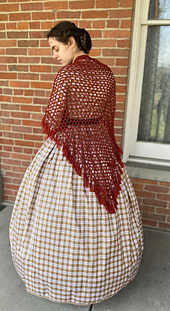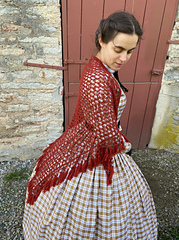 This delicate lacework shawl was featured in Peterson's Magazine, in 1859. It is constructed in lace weight wool yarn, and worked in crochet. This pattern is a modern translation with images to help guide you along.
