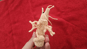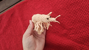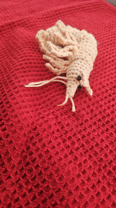 A pattern for a cute shrimp friend! Expects intermediate crochet skill level. I provide the yarn and hook size I used for the example photos, but this can easily be sized up or down by simply using different sized hooks and yarn.