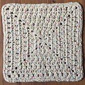 Made using **Lily Sugar’n Cream cotton yarn** and a **5 mm (H) crochet hook**, this design creates a durable fabric that works well for washing dishes, wiping counters, or adding to handmade kitchen sets.