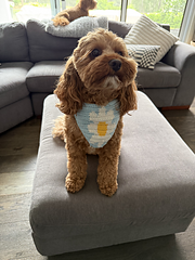 This is The Daisy Dog Bandana, inspired by my puppy, Daisy.