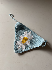 This piece is made using half double crochet and tapestry technique to make the daisy flower in the centre. This pattern comes in 3 sizes, S, M and L.