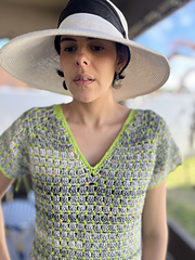 Granny No7 top is a V neck Raglan top crocheted using the granny block stitch.