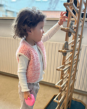 The pink vest is knitted in Melody col. 25, Alpaca Bouclé col. 0100 and Nepal col. 0100.