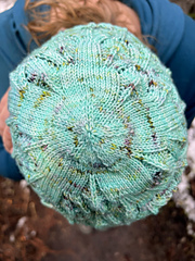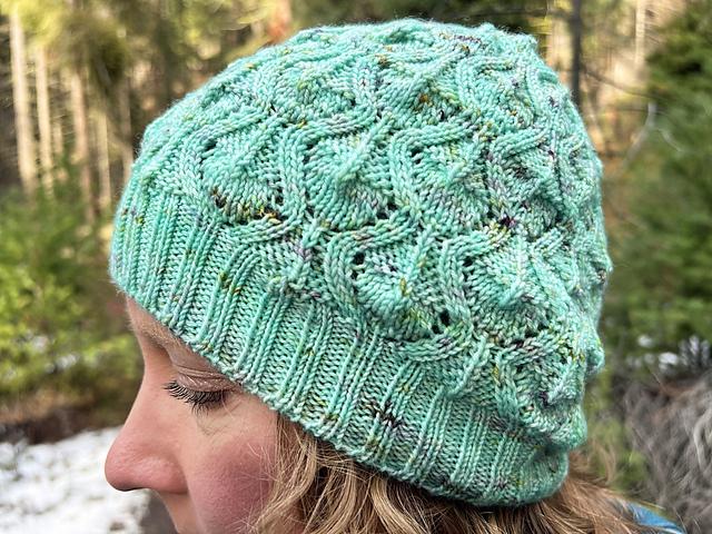 Zilvia is a gently slouchy fingering-weight lace hat designed for three-season wear. Worked in the round from brim to crown, this lightweight, one-skein hat features an all-over lace pattern with integrated crown shaping.
