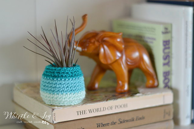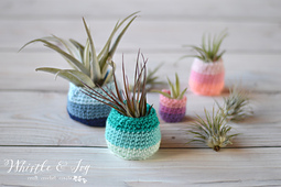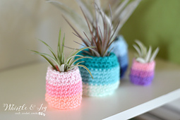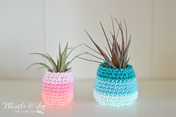 Display your air plants in these fun and bright pots! They are an easy and quick project, perfect for beginners and seasoned crocheters alike.