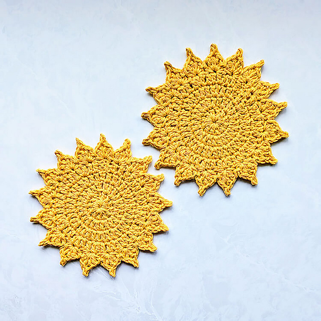 These crochet sun coasters work beautifully for daily coffee and tea, summer get-togethers, desk setups, and easy gifts like housewarmings and more. They’re also a nice way to use up leftover yarn.
