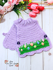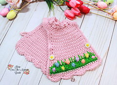 This cheerful design includes a playful border that looks like colorful Easter eggs hidden in tall grass. The eggs are created with puff stitches in bright spring colors, while green spiked single crochet stitches form the blades of grass around them. The result is a charming and textured trim that makes this sweater truly unique.
