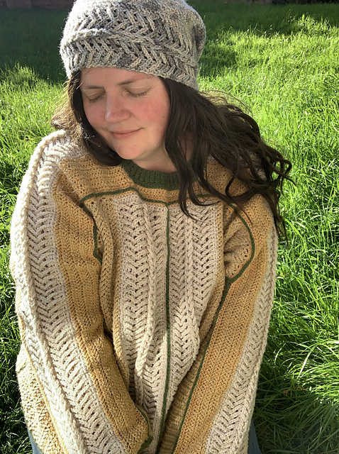 One stitch pattern forms the basis of the main panels of the top. To give added dimension to the piece I added a cable chain running up the centre. This panel made me think of a fish spine but also Vikings on a long boat, holding oars.