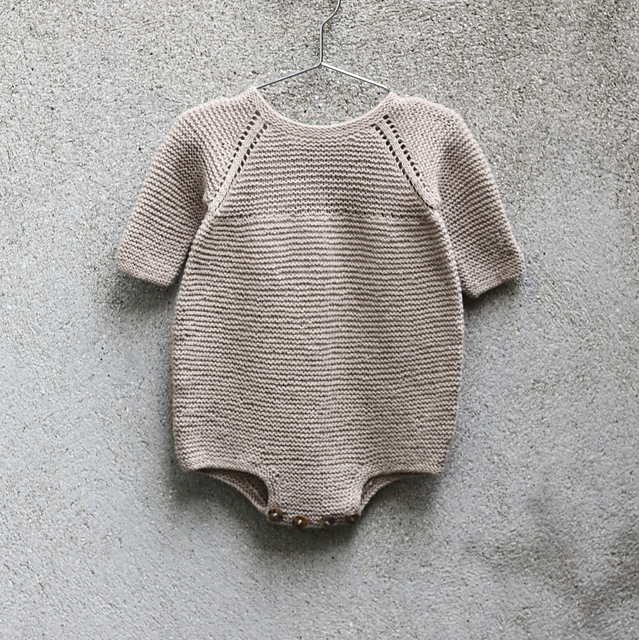 Garter Romper is a simple and roomy romper with minimal, yet decorative, eyelet details along the raglan seams. It is worked both flat and in the round from the top down in garter stitch using 1 strand of either Merino, Cotton Merino or Pure Silk.