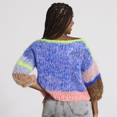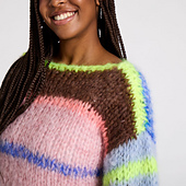 Salt is a lovely chunky sweater with a boat neckline, drop-sleeves and a beautiful geometric pattern. The sweater is soft and chunky yet still light. It is knitted top-down using 2 strands of [Handdyed Fat Mohair.][1]