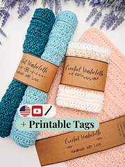 This versatile crochet washcloth makes a thoughtful handmade gift for housewarmings, spa sets, holidays, or teacher gifts, and it’s a fantastic stash-buster for cotton yarn. Make one for yourself or crochet a whole stack for a beautiful handmade set. Printable tags are included!