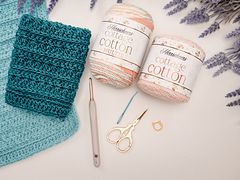 This washcloth is worked flat in rows using a repeating 4-row Petal Loop Stitch pattern, creating delicate loops that resemble soft flower petals across the fabric. The stitch pattern adds gorgeous texture while still being approachable, making this project a wonderful way to practice the Petal Loop Stitch without committing to a larger project like a blanket or garment.